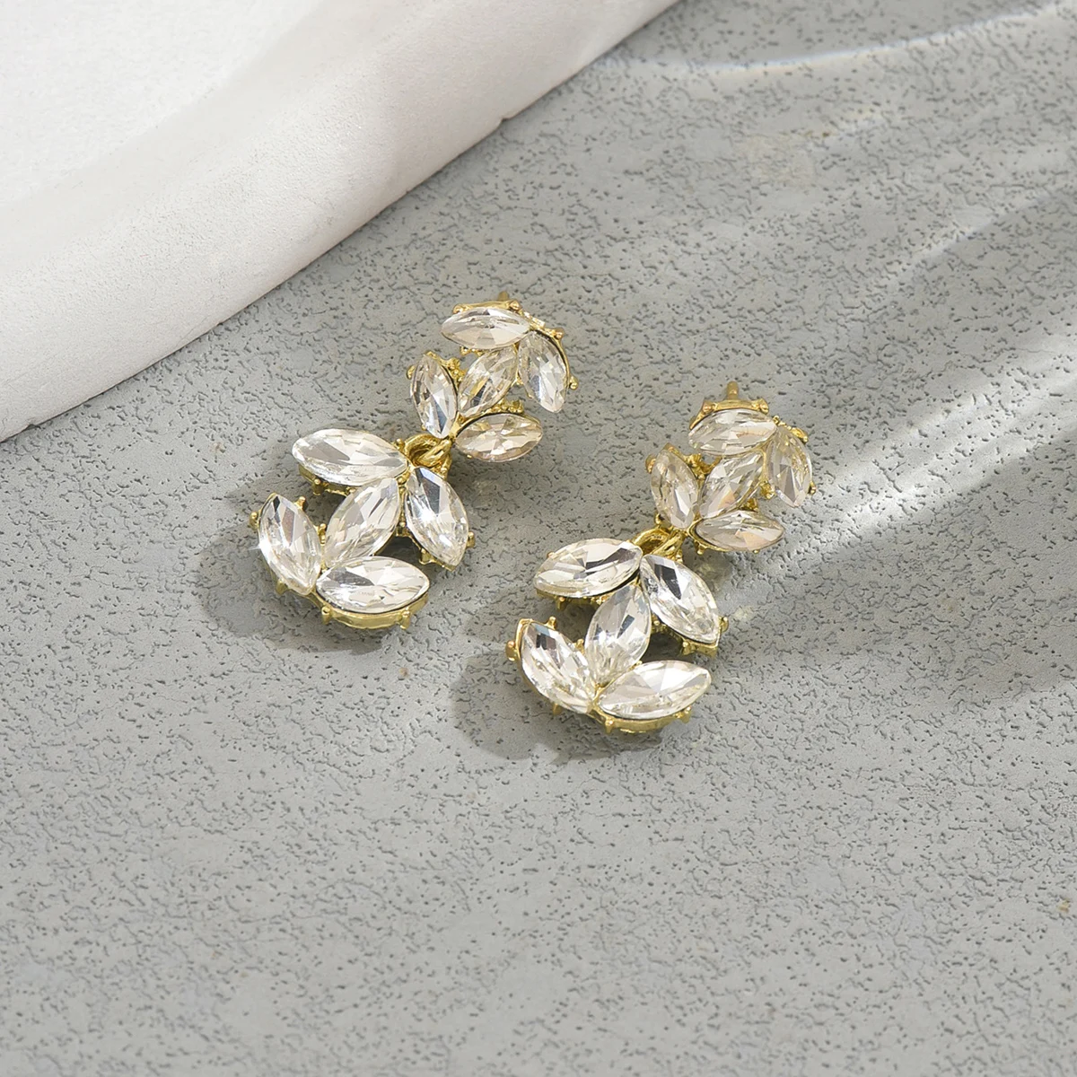 Awara Earrings feature elegant leaf-shaped dangles with sparkling crystals and soft enamel detailing, creating a delicate and feminine look. Their graceful design adds subtle movement and charm to any outfit.